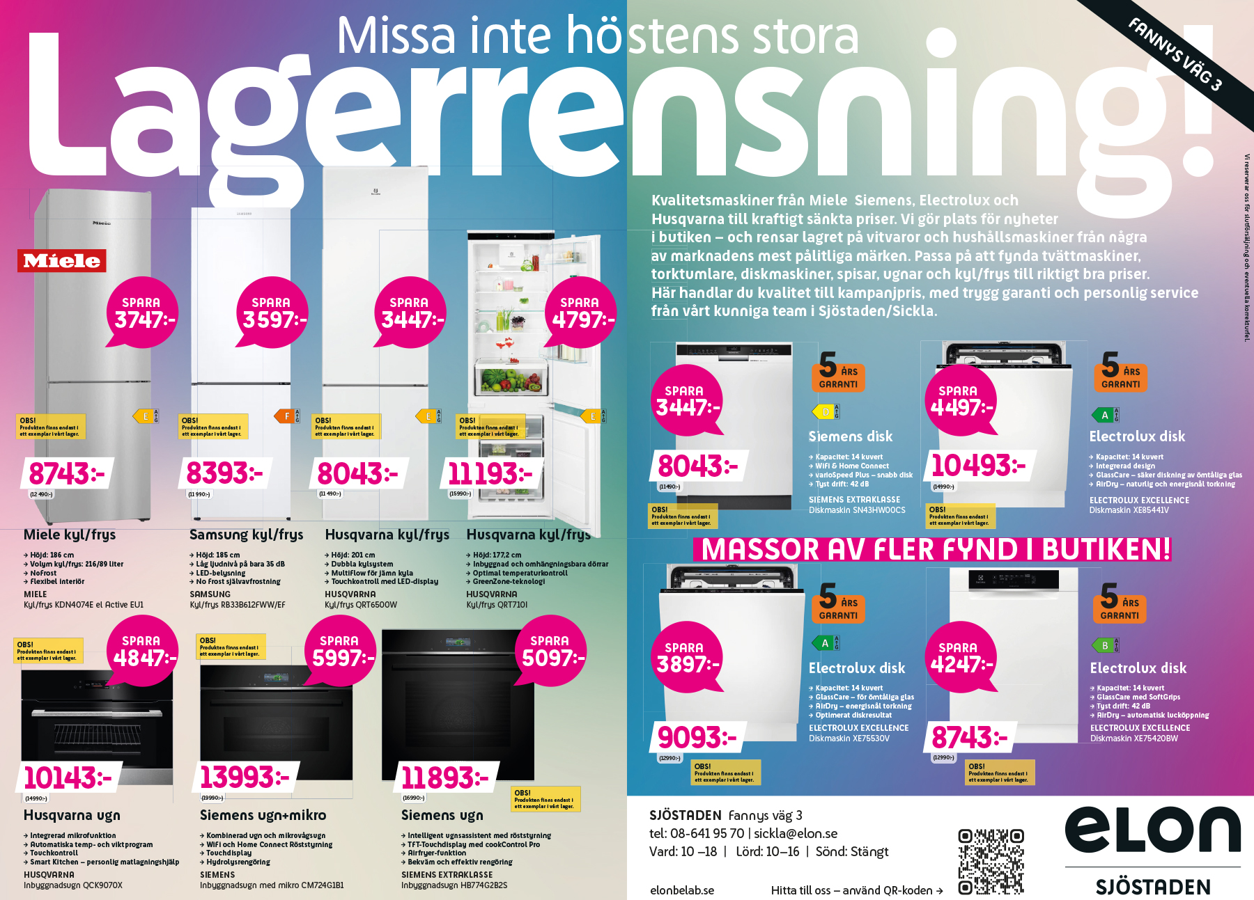 Missa inte höstens stora lagerrensning i Sjöstan på kvalitetsmaskiner från Miele, [...]