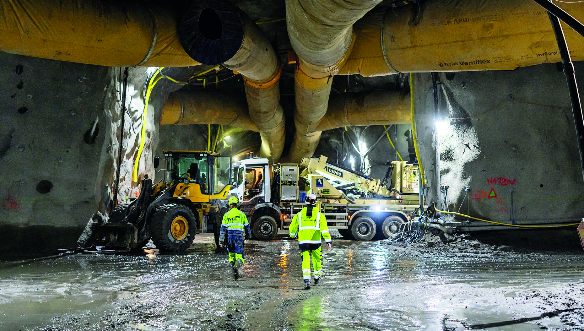 läckage. En betongtunnel – en så kallad lining – byggs inuti bergtunneln för att skapa en stabil och torr miljö.